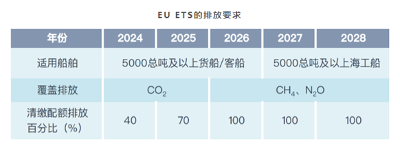 EU ETS要求,船舶应就其在欧盟港口停留期间及港口间航行期间排放量的100%,以及欧盟以外航程碳排放量的50%交纳碳配额。